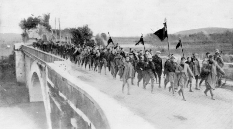 Os camicie nere (camisas negras) marcham em direção a Roma em outubro de 1922