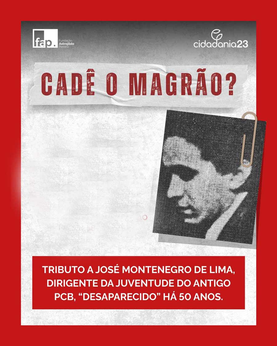 Há 50 anos, desaparecia José Montenegro de Lima que dedicou sua vida à luta pela democracia no Brasil. Militante da Juventude Comunista foi barbaramente assassinado no interior de São Paulo — seu corpo nunca foi encontrado.