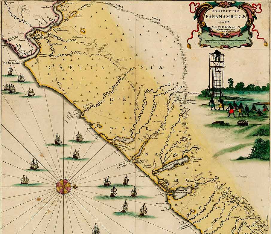 Mapa da Capitania de Pernambuco, com representação do Quilombo dos Palmares (1647) de Frans Post (1612–1680)